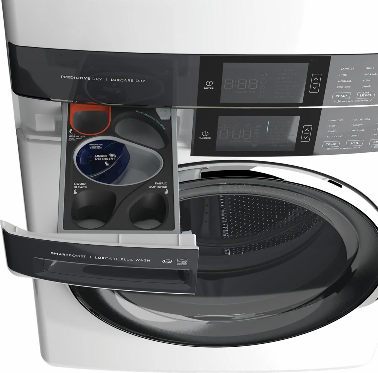 The Electrolux ELTE7600AW is a 600 Series Laundry Tower that combines a washer and electric dryer in a single vertical unit designed to save floor space without sacrificing capacity. In Bay Area homes, we repair ELTE7600AW units with washer drain issues, poor spin performance, dryer heating concerns, startup failures, noisy operation, and cycle interruptions that affect the whole laundry routine.